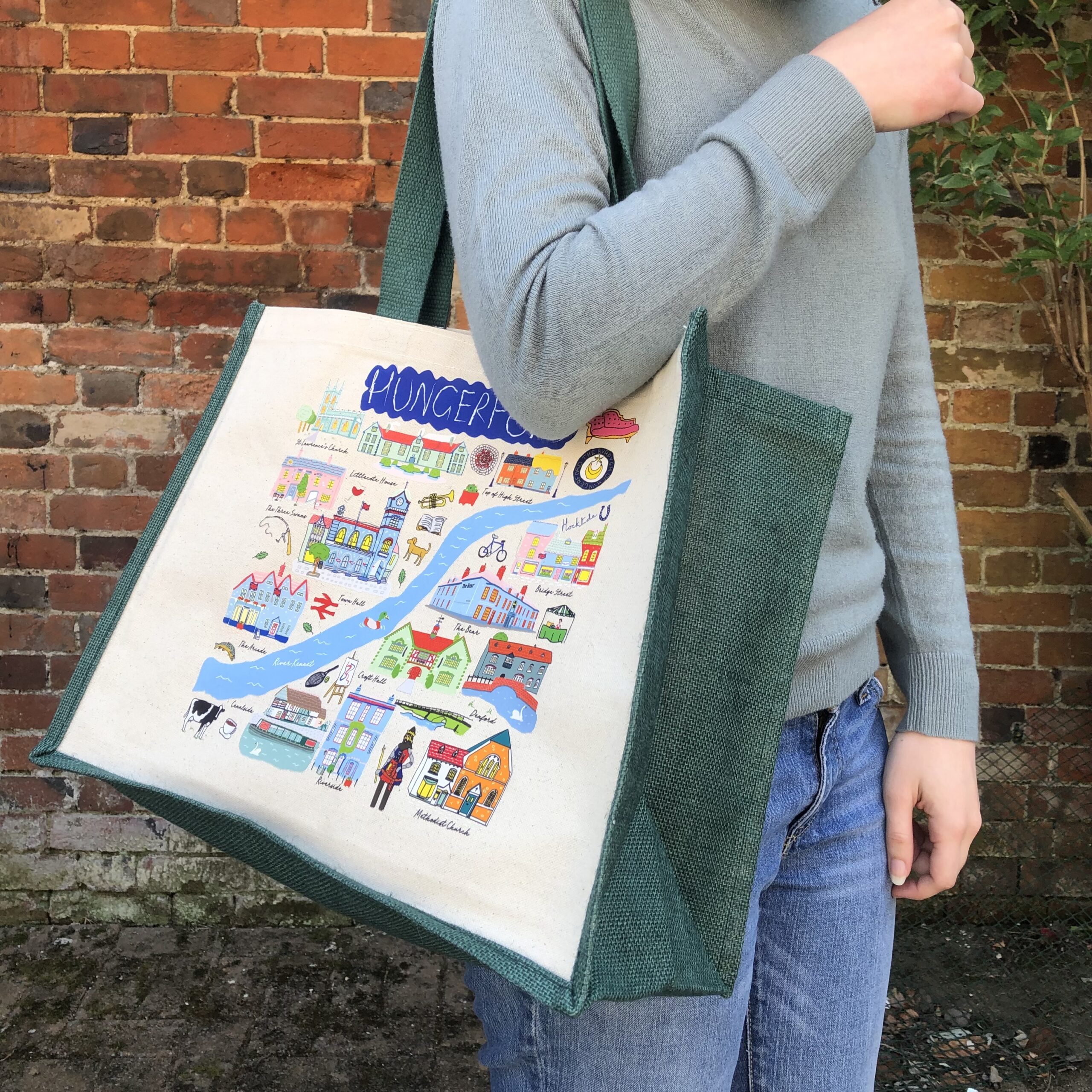 Illustrated bag celebrating the town of Hungerford, Berkshire